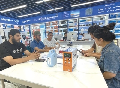 最近,埃馬紐埃爾又開始關(guān)注新能源產(chǎn)品。“喀麥隆一些地方存在電力短缺、供電不穩(wěn)的問題,很多當(dāng)?shù)厝讼M夷茉谥袊业胶线m的產(chǎn)品?!睘榇?,他把目標(biāo)瞄準(zhǔn)了義烏國際商貿(mào)城的新能源產(chǎn)品市場,尋找到一些適合喀麥隆的光伏設(shè)備。“中國的新能源產(chǎn)品性能可靠、性價比高,產(chǎn)品品類覆蓋領(lǐng)域廣泛?!卑qR紐埃爾表示,大到醫(yī)療機構(gòu),小到禽畜養(yǎng)殖場,中國光伏設(shè)備供應(yīng)的電力有助于滿足當(dāng)?shù)孛癖娚a(chǎn)生活的用電需求。