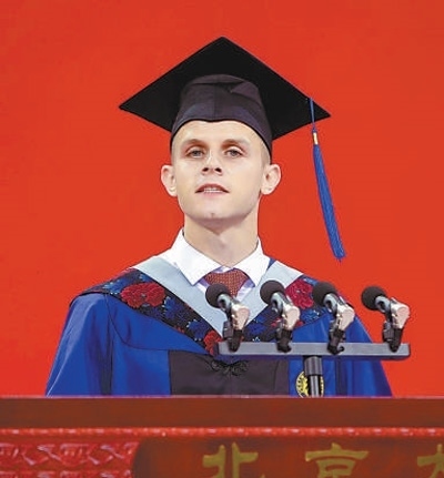 安德里亞在北京大學(xué)畢業(yè)典禮上作為學(xué)生代表發(fā)言。受訪(fǎng)者供圖