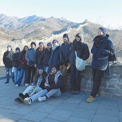 1月7日,弗吉尼亞大學(xué)代表團(tuán)成員在八達(dá)嶺長城合影留念。本報記者 趙益普攝