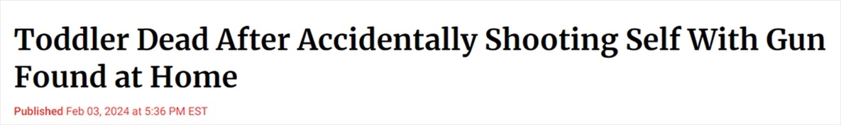 美國疾病控制與預(yù)防中心(CDC)的數(shù)據(jù)顯示,“意外傷害是造成美國0至17歲未成年人死亡的主要原因,而槍支是主要的傷害方式”,其中超半數(shù)的意外槍擊事件發(fā)生在家中。