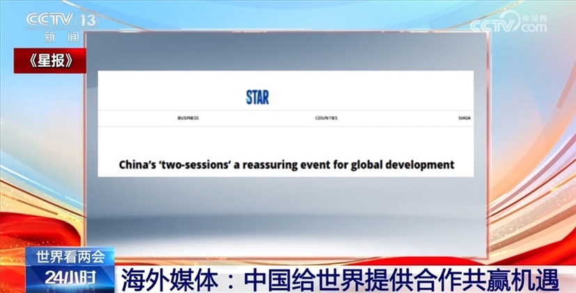 央視網(wǎng)消息:連日來(lái),海外媒體對(duì)中國(guó)兩會(huì)的關(guān)注持續(xù)升溫,中國(guó)經(jīng)濟(jì)、合作共贏(yíng)成為了海外媒體報(bào)道中國(guó)兩會(huì)的關(guān)鍵詞。