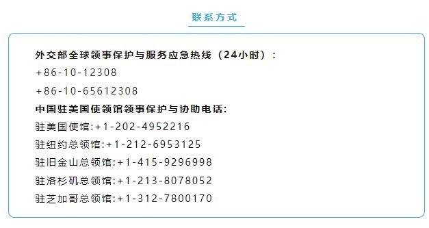 外交部及駐美使領(lǐng)館已就此向美方提出嚴正交涉。同時,提醒擬赴美人員意識到入境美國時可能遇到各種意外情況。如需尋求幫助,請及時聯(lián)系中國駐美使領(lǐng)館。