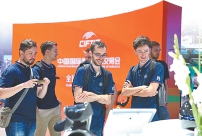 北京交通大學(xué)留學(xué)生在北京國(guó)家會(huì)議中心參觀(guān)2023年中國(guó)國(guó)際服務(wù)貿(mào)易交易會(huì)。胡慶明攝(影像中國(guó))