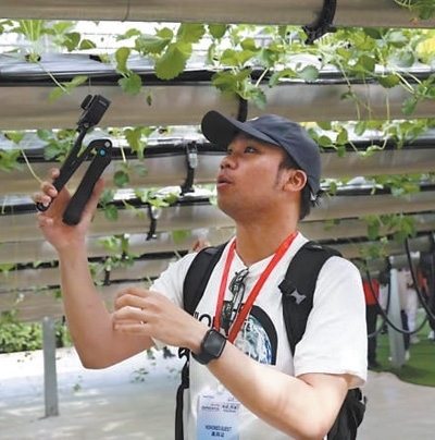 聞名在河南商丘市夏邑縣太平鎮(zhèn)參觀(guān)龍港灣空中草莓體驗(yàn)館的智慧農(nóng)業(yè)設(shè)施并錄制視頻。受訪(fǎng)者供圖