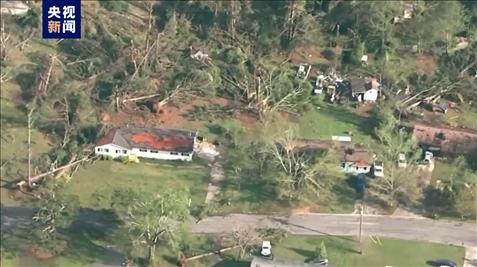 當(dāng)?shù)貢r間4月3日,美國佐治亞州羅克代爾縣遭遇龍卷風(fēng)襲擊。航拍畫面顯示,當(dāng)?shù)氐姆课莺蜆淠驹獾絿?yán)重破壞。