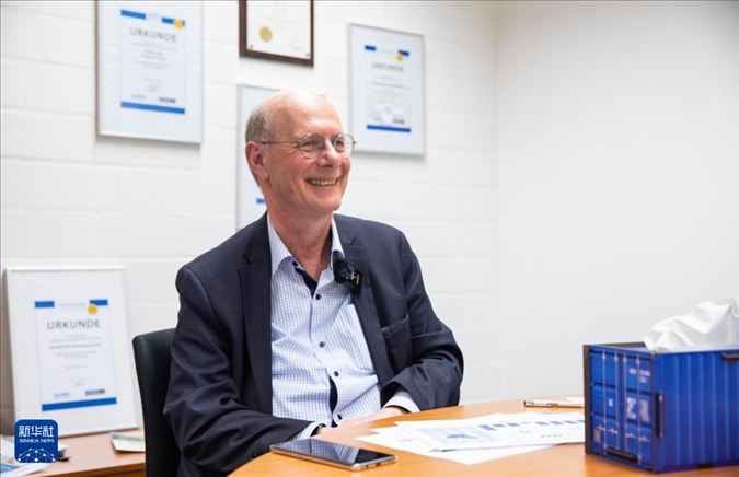 ?3月27日,德國杜伊斯堡-埃森大學(xué)交通與物流系主任貝恩德·諾合在杜伊斯堡接受新華社專訪。新華社記者 張帆 攝