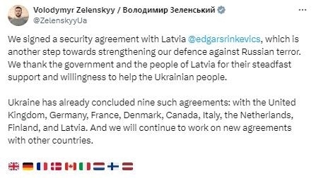 同日早些時(shí)候,澤連斯基在另一條貼文中宣布,烏克蘭已經(jīng)與英國(guó)、德國(guó)、法國(guó)、丹麥、加拿大、意大利、荷蘭、芬蘭和拉脫維亞簽署了雙邊安全協(xié)議。他還稱(chēng),“烏克蘭將繼續(xù)努力與其他國(guó)家達(dá)成新協(xié)議?!?/p>