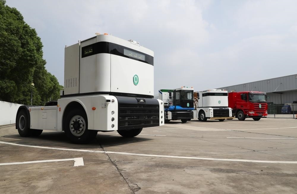 ?一輛西井科技的無人駕駛重卡Q-Truck(前)在位于上海的無人駕駛商用車聯(lián)合實(shí)驗(yàn)室場地上進(jìn)行動態(tài)測試(2023年9月26日攝)。 新華社記者 方喆 攝