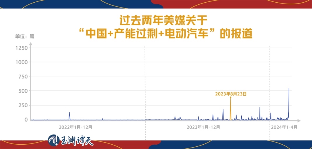 而2023年至今,美媒對(duì)所謂中國(guó)“產(chǎn)能過剩論”的報(bào)道轉(zhuǎn)移到了中國(guó)的“新能源產(chǎn)品”上,其中,新能源汽車尤為突出。