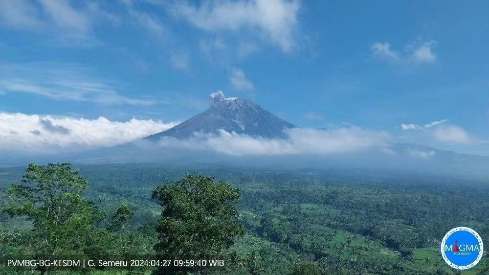 當(dāng)?shù)貢r(shí)間4月27日9時(shí)59分,塞梅魯火山再次發(fā)生噴發(fā),火山灰柱達(dá)800米,噴發(fā)持續(xù)時(shí)間為124秒。(總臺(tái)記者 巫曉瑩)