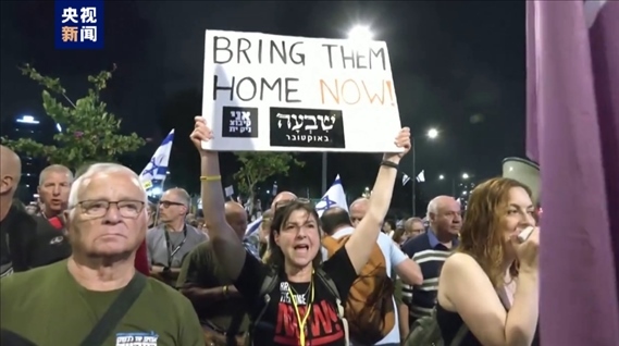 當(dāng)?shù)貢r(shí)間29日,大量以色列民眾在特拉維夫舉行抗議,要求以色列政府與哈馬斯盡快達(dá)成協(xié)議,讓被扣押的以色列人得到釋放。