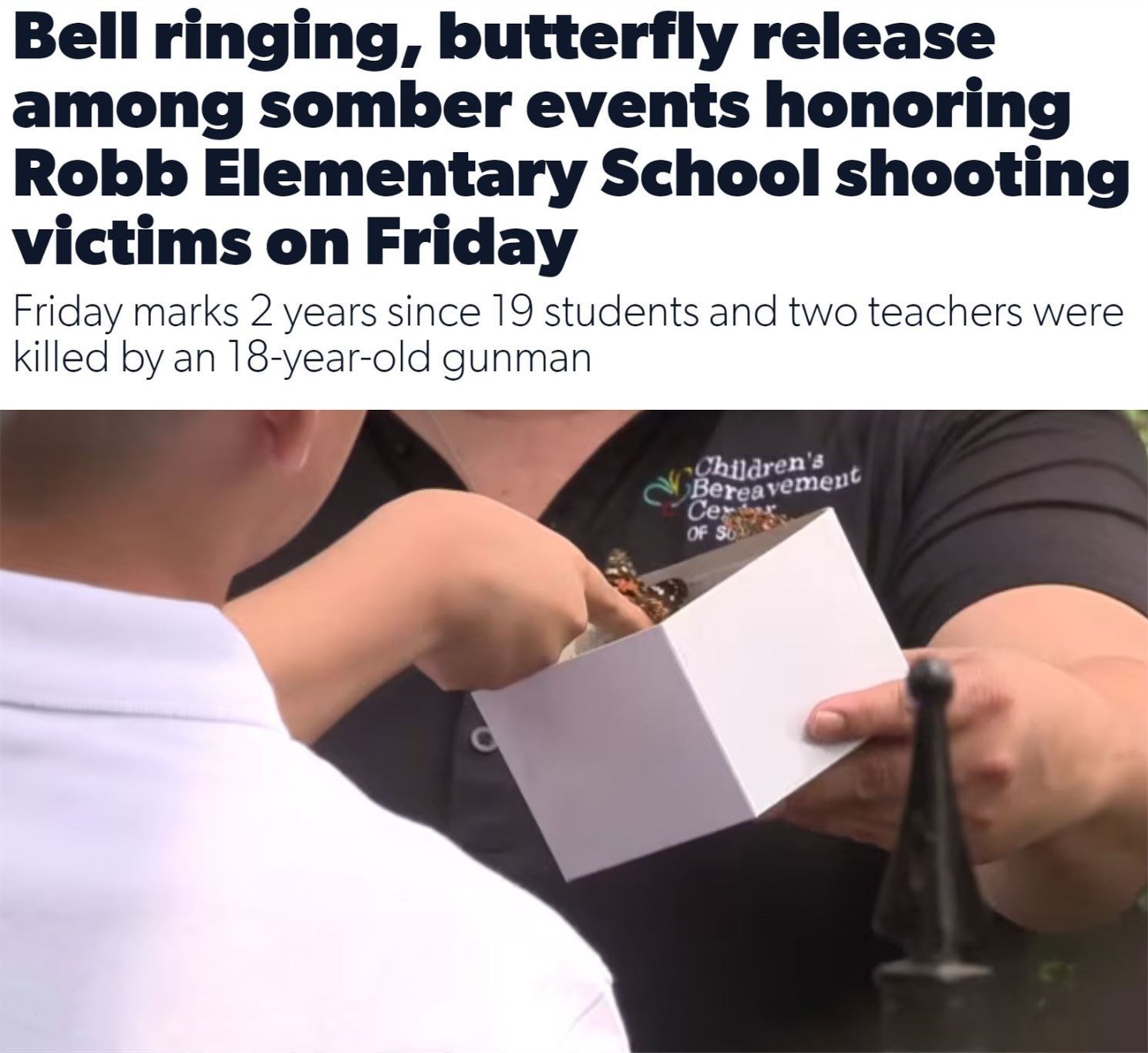 △美國廣播公司旗下KSAT網(wǎng)站:當(dāng)?shù)孛癖?4日通過放飛蝴蝶的方式悼念遇難師生
