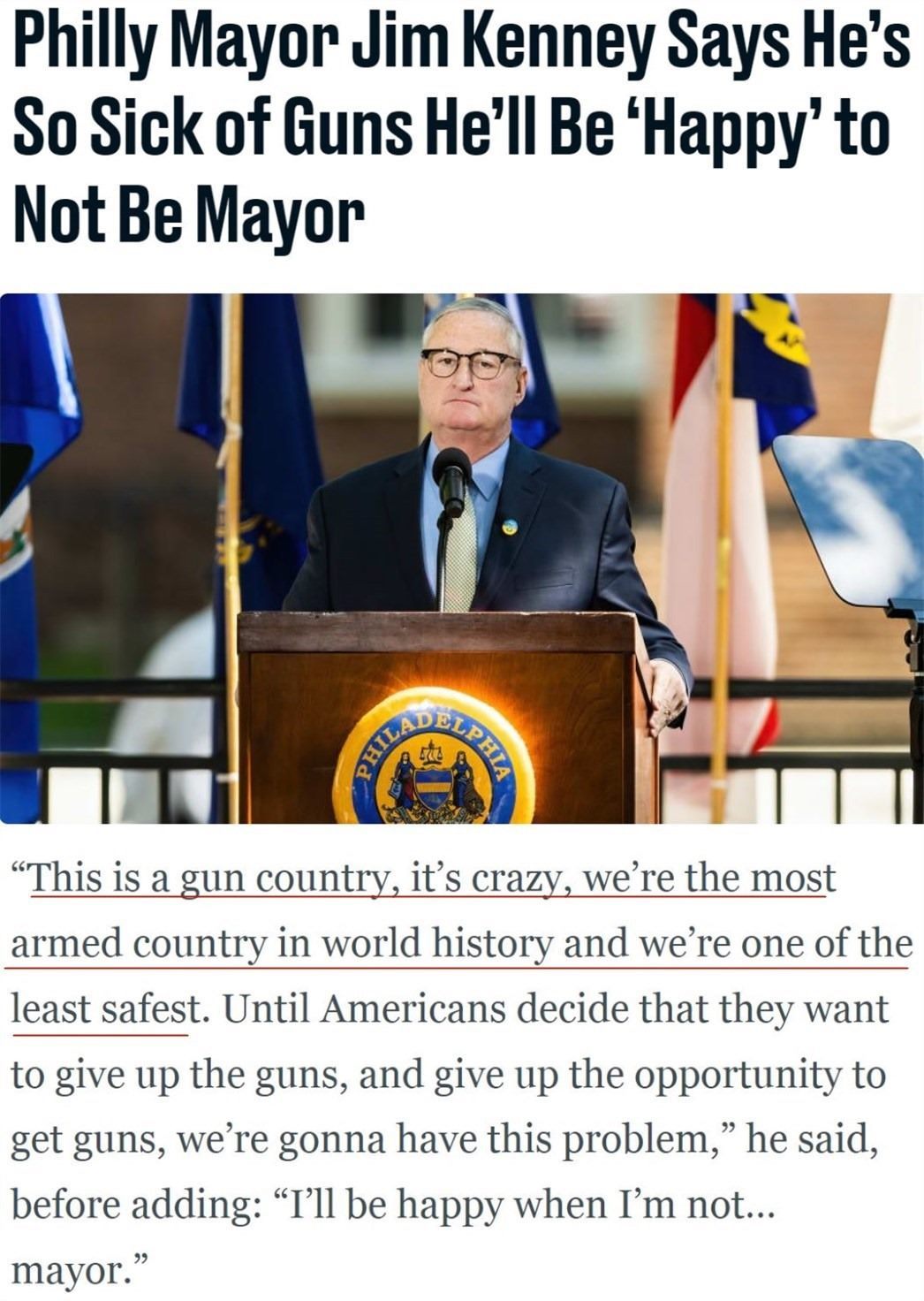 對于如此夸張的數(shù)據(jù),美國費(fèi)城前任市長吉姆·肯尼曾無奈地感嘆,美國是槍支王國。