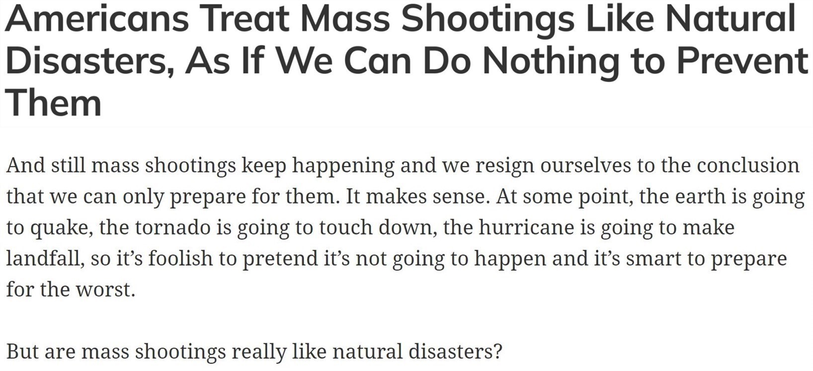 《今日美國報》曾評論說,美國至今沒有一部能夠遏制槍支暴力的有效控槍法案,“這是我們的政治領(lǐng)導(dǎo)人欠我們的”。