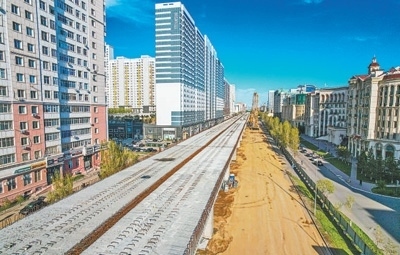 哈薩克斯坦阿斯塔納市輕軌是中亞地區(qū)首條城市輕軌線路,途經(jīng)努爾蘇丹國(guó)際機(jī)場(chǎng)、納扎爾巴耶夫大學(xué)、世博園、總統(tǒng)府、新火車站等阿斯塔納市地標(biāo)建筑和重點(diǎn)功能區(qū),全長(zhǎng)22.4公里。中國(guó)企業(yè)中建六局承建了其中的18.34公里,共計(jì)9個(gè)車站及14個(gè)區(qū)間。該輕軌項(xiàng)目建成通車之后,線路兩端的通勤時(shí)間可以縮短近一半,將成為哈薩克斯坦乃至中亞地區(qū)最具技術(shù)代表性的城市軌道交通項(xiàng)目。目前該項(xiàng)目建設(shè)正在穩(wěn)步推進(jìn)中。