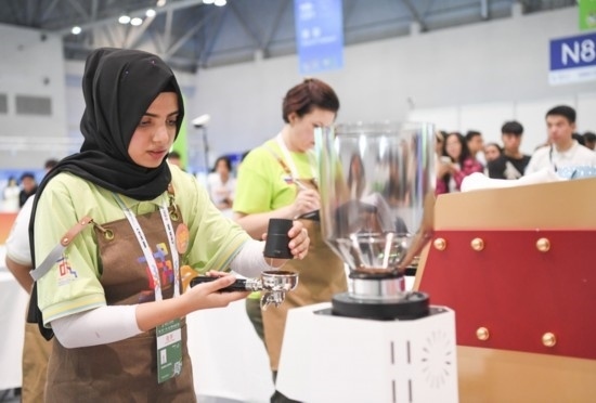 6月24日,第二屆“一帶一路”國(guó)際技能大賽咖啡制作項(xiàng)目選手在比賽中。新華社記者王全超 攝