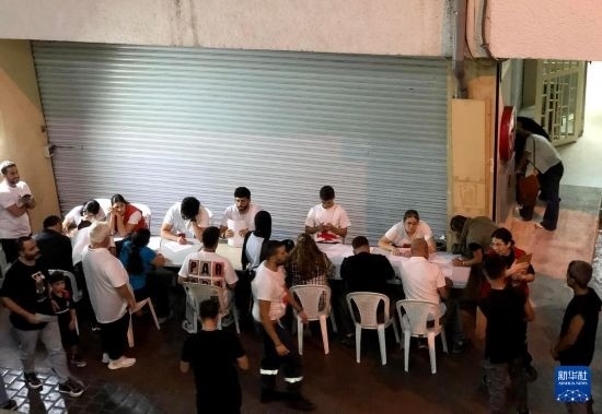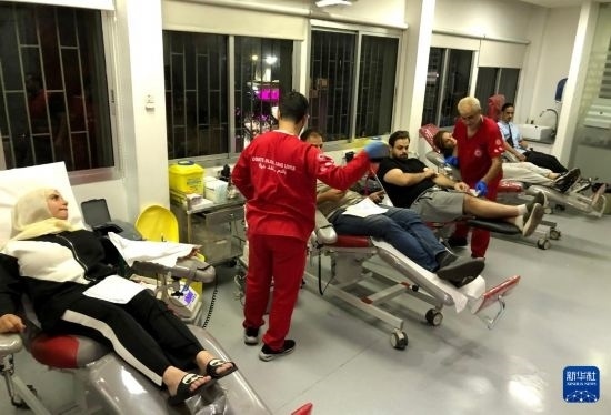 9月17日,在黎巴嫩貝魯特,人們登記為傳呼設(shè)備爆炸事件傷者獻血。新華社發(fā)(比拉爾·賈維希攝)