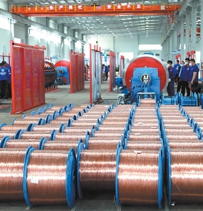 固達電線電纜(集團)有限公司二期新能源線纜車間內(nèi)整齊擺放著銅導(dǎo)體。以上圖片均為本報記者陳尚文攝