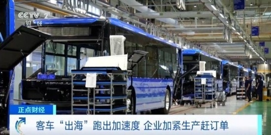 總臺(tái)央視記者 楊紫薇:在河南鄭州的一家客車生產(chǎn)企業(yè)的海外車間里,客車即將組裝下線,工人們正在進(jìn)行最后的安裝調(diào)試階段。據(jù)了解,隨著生產(chǎn)效率的提升,出口到海外的客車從原來(lái)的25天左右的生產(chǎn)周期,縮短到了現(xiàn)在的大約21天。此外,出口到海外的客車和內(nèi)銷的客車存在一定的區(qū)別,比如即將發(fā)往挪威的客車,從外觀上看,它的顏色會(huì)更加鮮明,光澤度、飽和度也會(huì)更高,車上配備的也都是電子后視鏡。