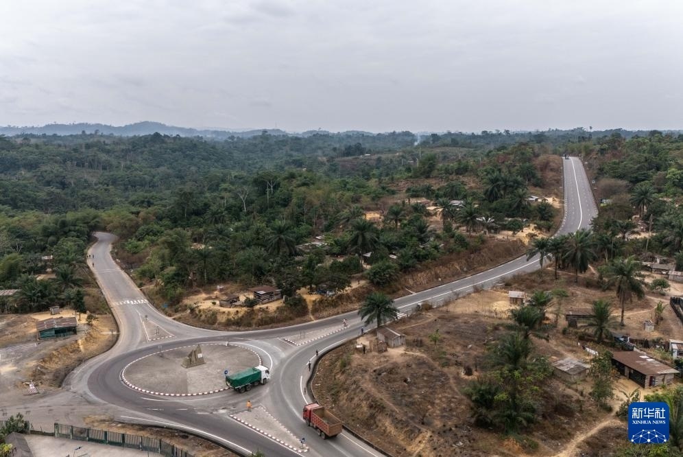 這是8月1日拍攝的連接布拉柴維爾和黑角的剛果(布)國(guó)家一號(hào)公路(無(wú)人機(jī)照片)。