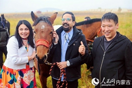 外媒記者在敕勒川草原。人民網(wǎng)記者 張雪冬攝