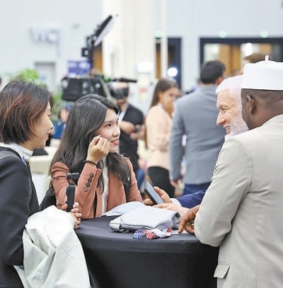 金磚喀山峰會新聞中心內(nèi),參會記者正在溝通交流。本報記者 韓曉明攝