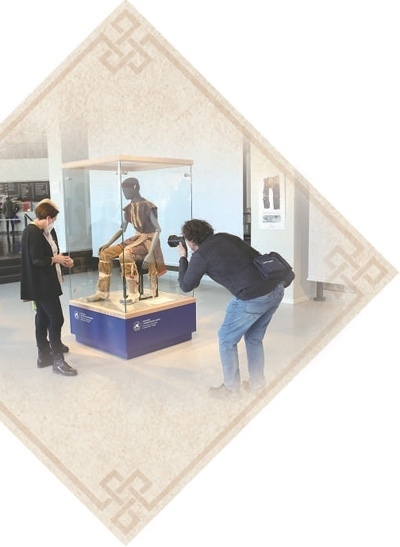 2022年,新疆吐魯番盆地洋海墓地IM21出土服飾復(fù)原品在德國(guó)開(kāi)姆尼茨考古博物館展出。德國(guó)開(kāi)姆尼茨考古博物館供圖