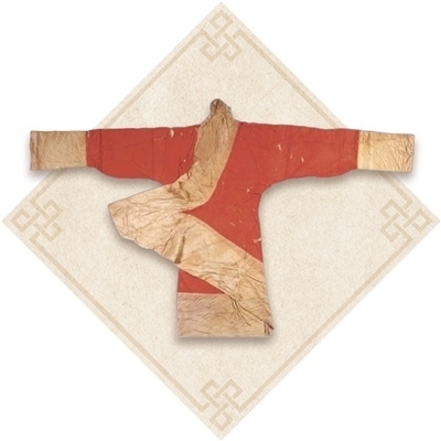 湖南長(zhǎng)沙馬王堆一號(hào)墓出土朱紅菱紋羅絲綿袍,中原曲裾樣式代表。圖為德國(guó)考古研究院提供