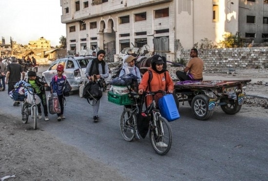 這是10月19日在加沙地帶拍攝的逃離加沙地帶北部杰巴利耶難民營(yíng)的民眾。新華社發(fā)(馬哈茂德·扎基攝)