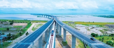 帕德瑪大橋鐵路連接線遠景。
