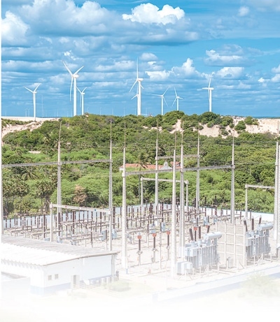 由中國國家電網(wǎng)巴西電力CPFL公司運(yùn)營的阿拉卡蒂2號風(fēng)電場和阿拉卡蒂2號升壓站。