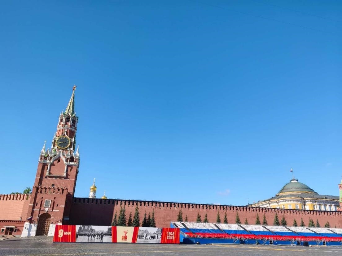 當(dāng)?shù)貢r間5月6日,紅場上的觀禮臺已準(zhǔn)備就緒。 鄺西曦 攝
