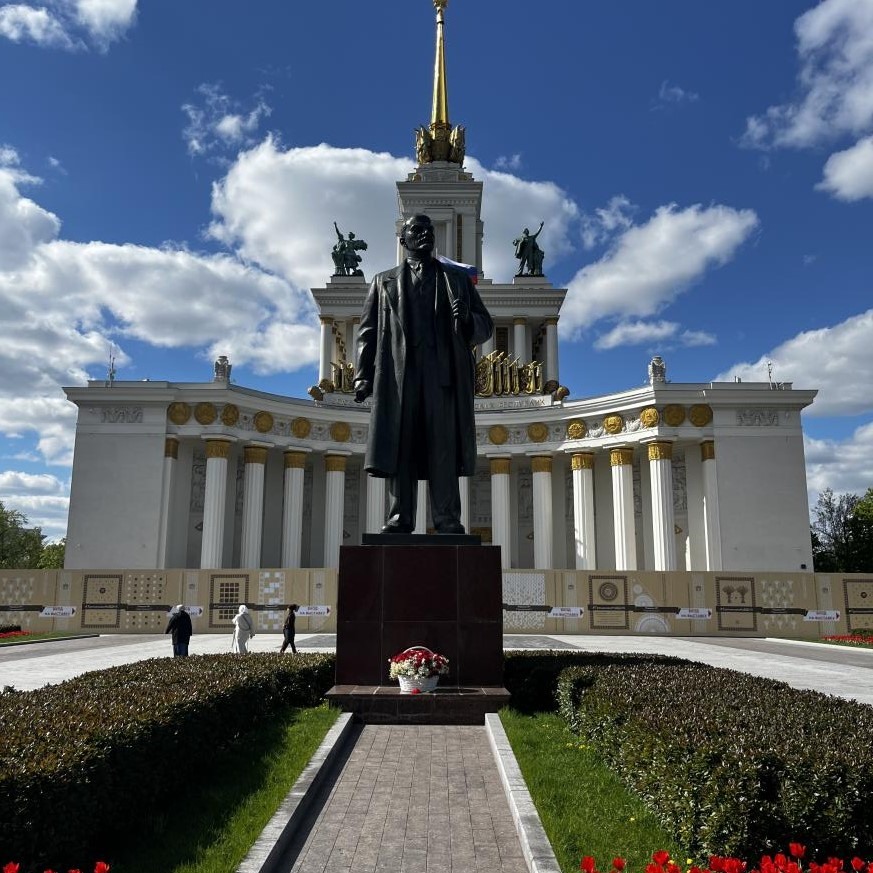 當(dāng)?shù)貢r間5月6日,位于俄羅斯首都莫斯科全俄展覽中心前的列寧雕像。姜忠奇 攝