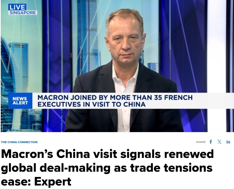 近日,法國總統(tǒng)馬克龍的訪華之行引發(fā)國際社會廣泛關注。美國消費者新聞與商業(yè)頻道(CNBC)采訪專家指出,這一中法重要外交活動標志著全球貿(mào)易緊張局勢的緩和,意味著一度受阻的全球貿(mào)易談判重回正軌,為國際經(jīng)貿(mào)合作注入新的活力。