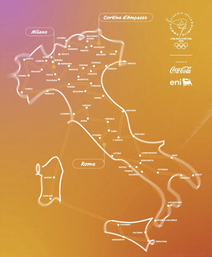 米蘭冬奧會火炬?zhèn)鬟f路線圖。圖源:米蘭冬奧組委