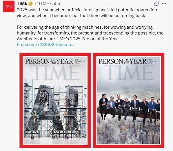 《時(shí)代》周刊在社交媒體上稱,2025年是人工智能潛力全面爆發(fā)且無可回頭的一年。