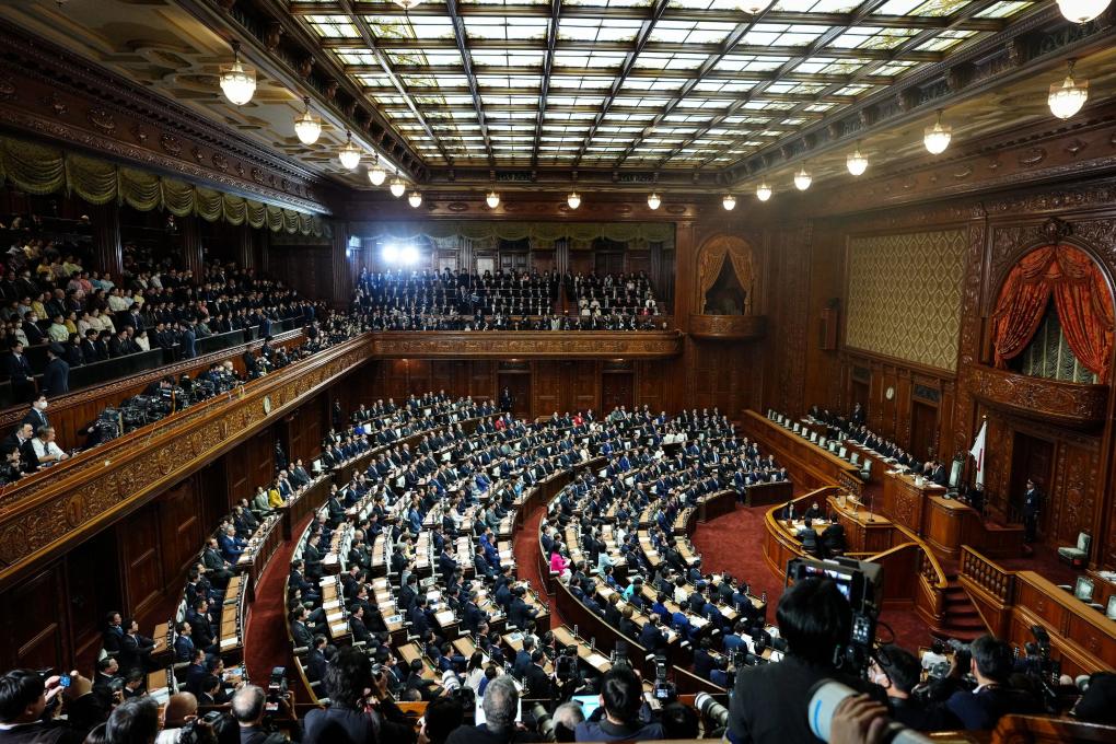 這是1月23日在日本東京拍攝的國(guó)會(huì)眾議院全體會(huì)議現(xiàn)場(chǎng)。日本眾議院議長(zhǎng)額賀福志郎當(dāng)天在眾議院全體會(huì)議上宣讀解散詔書(shū),日本眾議院正式解散。新華社記者賈浩成攝