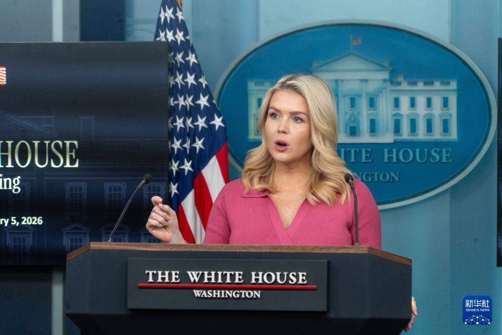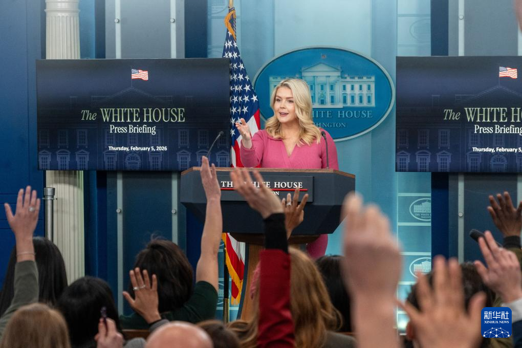 2月5日,在美國首都華盛頓白宮,白宮新聞秘書萊維特出席記者會(huì)。新華社發(fā)(李源清攝)