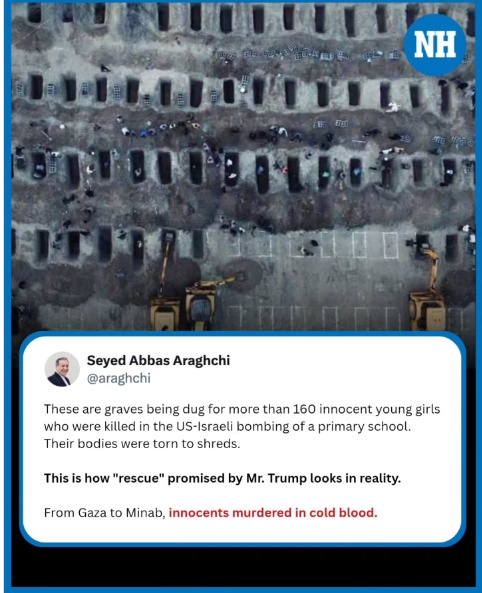 據(jù)報道,阿拉格齊在貼文中表示,“這些墳?zāi)梗菫榱寺裨嵩诿酪月?lián)合轟炸小學(xué)事件中遇難的160多名無辜女孩而挖的。她們的遺體支離破碎?!?/p>