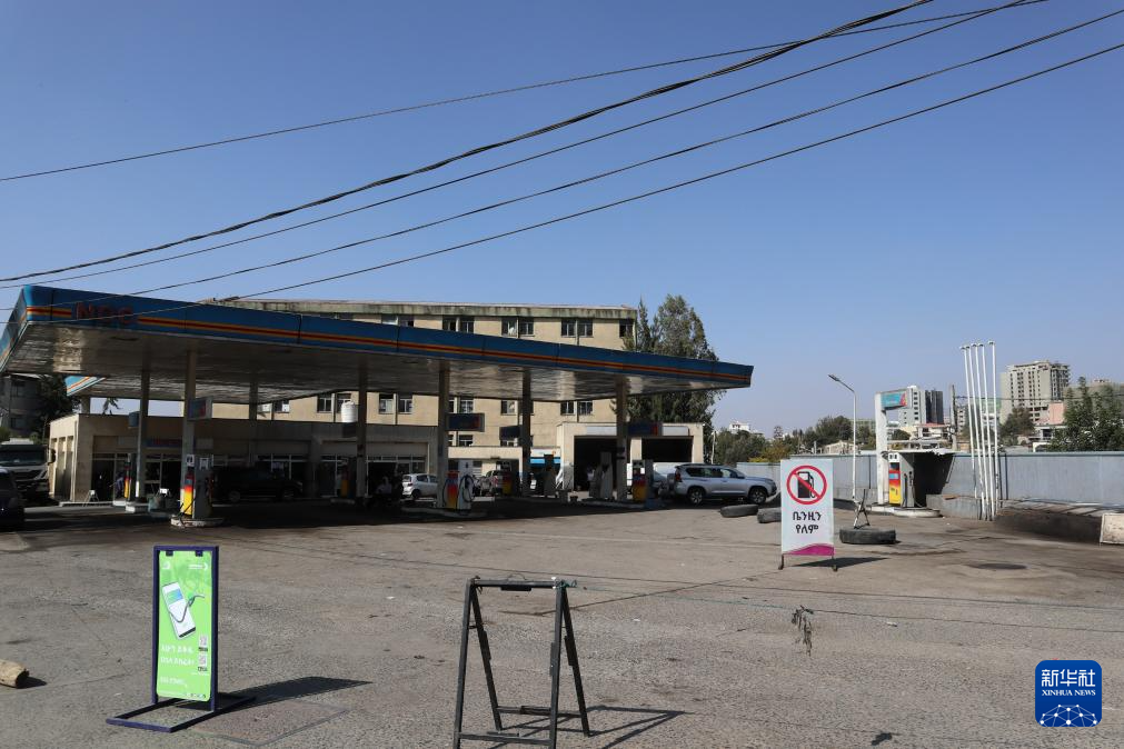 3月17日,在埃塞俄比亞首都亞的斯亞貝巴,由于石油供應(yīng)緊張,一個加油站暫停營業(yè)。新華社記者 劉方強 攝
