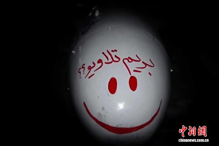 伊朗法爾斯通訊社發(fā)布的圖片顯示,伊朗伊斯蘭革命衛(wèi)隊(duì)向以色列特拉維夫發(fā)射的“目擊者-136”無(wú)人機(jī),彈頭上用波斯語(yǔ)寫(xiě)著“我們?nèi)ヌ乩S夫吧”,并畫(huà)了個(gè)笑臉。