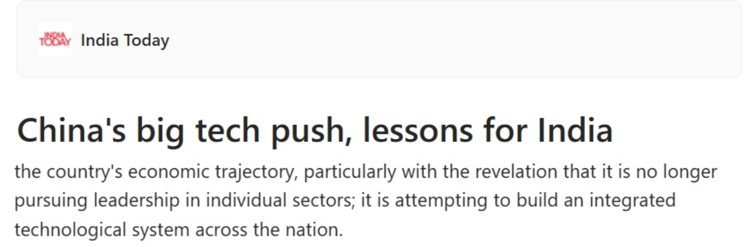 “十五五”規(guī)劃綱要對(duì)科技領(lǐng)域的最新部署,為世界提供了怎樣的發(fā)展范本?文章以印度為例稱(chēng),印度下階段的科技戰(zhàn)略必須從“部門(mén)性任務(wù)”躍升為“系統(tǒng)性能力”,讓前沿科技成為印度在生產(chǎn)力、治理與創(chuàng)新方面的核心驅(qū)動(dòng)力。