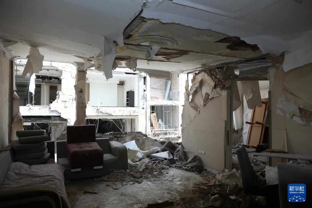 這是4月20日在伊朗首都德黑蘭拍攝的一處在美以襲擊中被損毀的建筑內(nèi)部。
