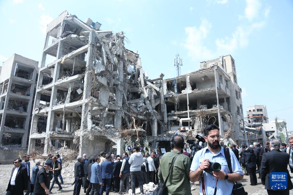 4月20日,在伊朗首都德黑蘭,駐伊朗使節(jié)和外國媒體查看一處在美以襲擊中被損毀的居民區(qū)建筑。