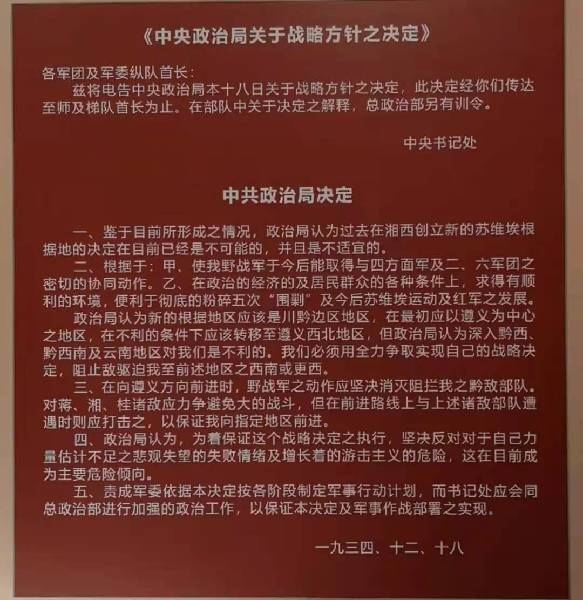 “鑒于目前所形成之情況,政治局認(rèn)為過(guò)去在湘西創(chuàng)立新的蘇維埃根據(jù)地的決定在目前已經(jīng)是不可能的,并且是不適宜的”。