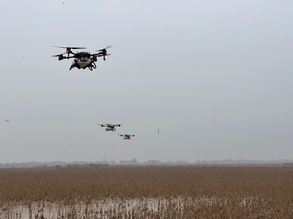 “地不凍,只管種。”石宇峰說,無人機的快速撒播可以讓種子在土地上凍前及時入土,而且播撒均勻,省時省力,一架無人機一天可以飛播300畝以上,確保小麥及時足額足面積播種。