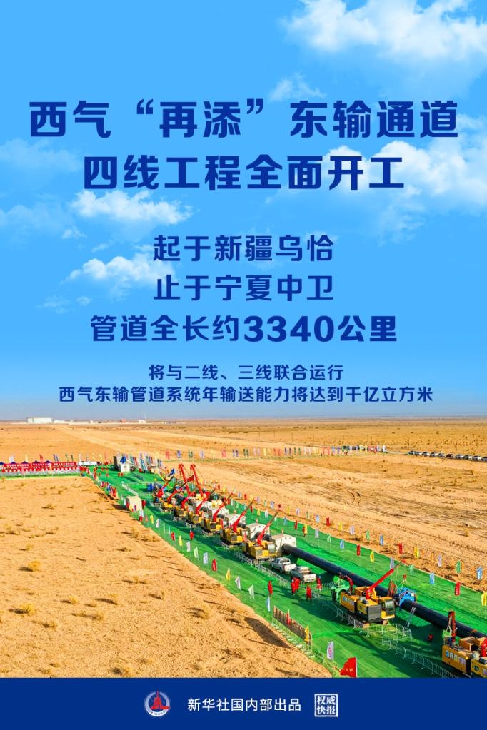 國(guó)家管網(wǎng)集團(tuán)西氣東輸四線工程28日正式開(kāi)工,工程起于新疆烏恰縣,止于寧夏中衛(wèi)市,管道全長(zhǎng)約3340公里。