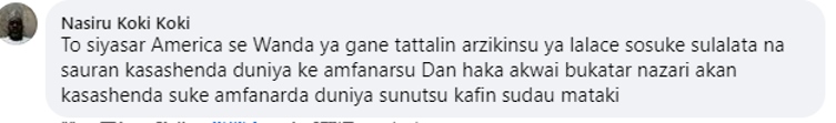 尼日利亞網(wǎng)友納斯魯(Nasiru Koki Koki)留言:“正是美國自身經濟的衰退,使得它如此迫切地想要阻止其他國家的經濟發(fā)展,面對美國的挑釁,中國應采取審慎的態(tài)度?!?/p>