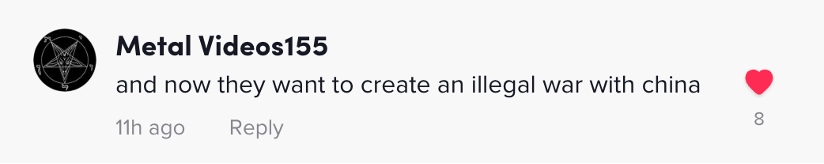 網(wǎng)友Metal Videos155:“不僅如此,現(xiàn)在美國還想要發(fā)動一場非法的對華戰(zhàn)爭?!?/p>
