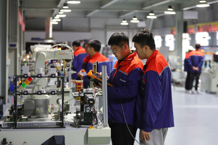 圖為11月2日,在沈陽(yáng)工學(xué)院工業(yè)機(jī)器人實(shí)訓(xùn)中心,機(jī)器人工程專業(yè)學(xué)生進(jìn)行工業(yè)機(jī)器人基礎(chǔ)實(shí)踐應(yīng)用操作。近年來(lái),沈陽(yáng)工學(xué)院全力建設(shè)工業(yè)機(jī)器人實(shí)訓(xùn)中心,將車間搬進(jìn)校園。針對(duì)企業(yè)需求,學(xué)校開(kāi)展機(jī)械加工等實(shí)操課程,有力提升學(xué)生就業(yè)水平。新華社記者 楊青 攝